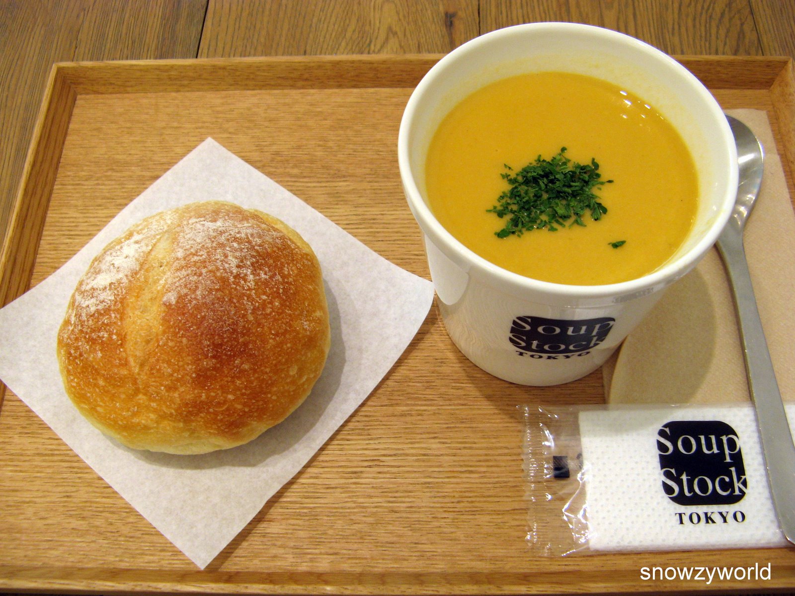 每天都会经过的 Soup Stock Tokyo。 被那面包加热汤所吸引。 面包可是热的呢。