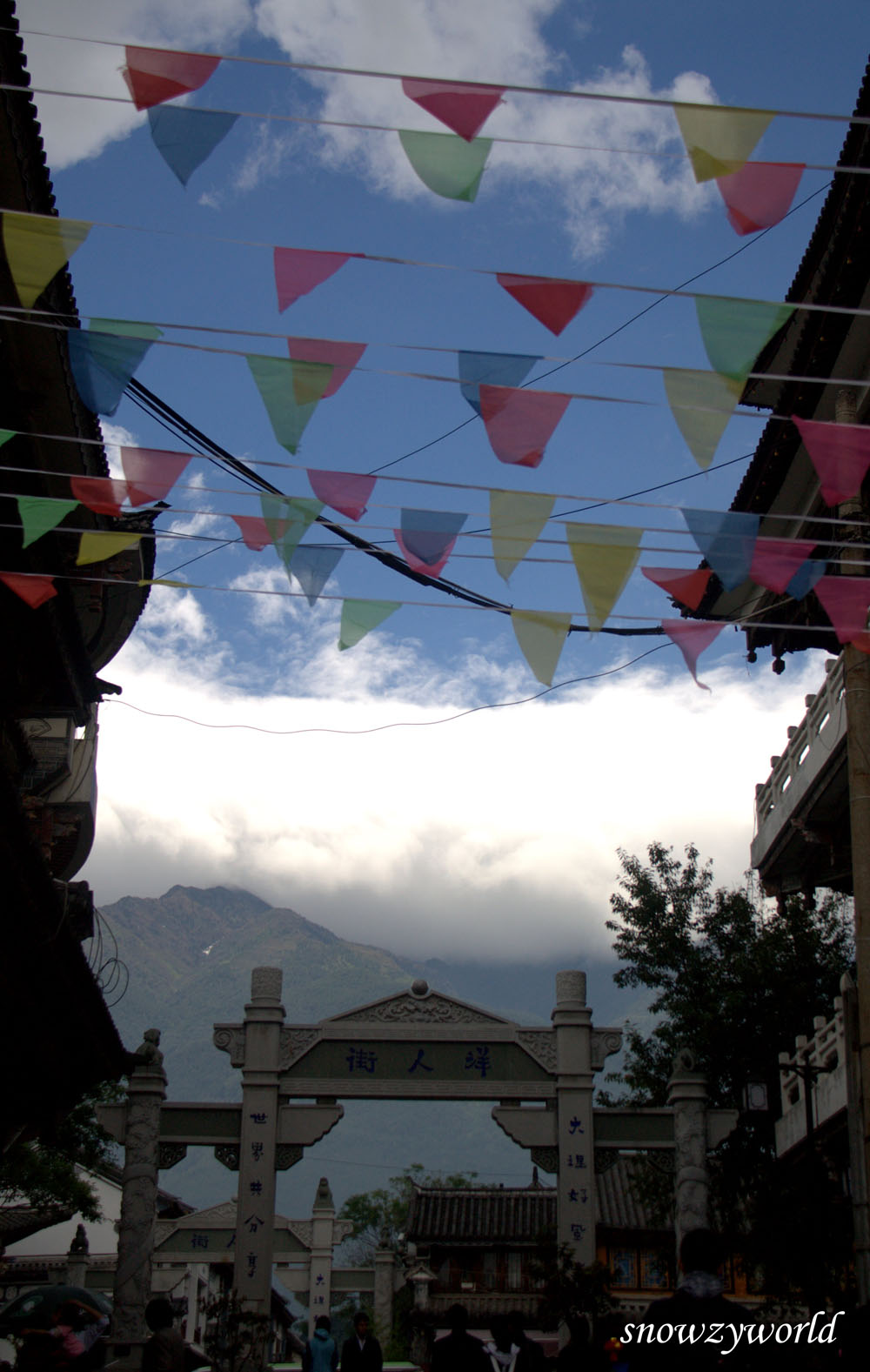 大理算是我们这次云南行的最后一站了。 从丽江到大理车程大约3小时。丽江的客栈接待建议我们搭巴士,可直接带我们到大理古城。 由铁路进的话是在大理市的下关下车, 还得转个车才能到古城,很麻烦。 我们都ok,所以就买了巴士车票。 可是呢, 原本3小时的车程却因为在山区, 就快要到大理时遇上了大阻塞, 巴士前进不得。 而这时也开始下起了雨。 唉。。So near yet so far。。 我们在车里被困了大约2小时, 雨也越来越大。 气人的是巴士并没有直接把我们载到大理古城前。还得冒着雨走上一段路才到城门。