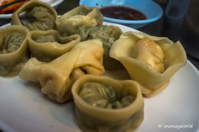 Dumplings filled with leeks and pork meat. Steaming hot, I find it ok only but Zhix loves it.