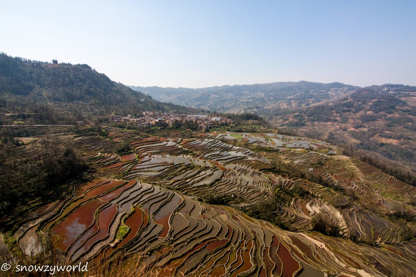 We did not buy the tourist pass but somehow managed to enter into the Bada scenic spot (坝达景观). Bada is a direct translation from the Hani language which means the nearest place to the sky. Known to be the best place to view the sunset. Bada terrace is huge! Starting from the 800 meters above sea level at the Masu river and climbs up along the mountains, the steep terraces extended to more than 2000 meters above sea level.