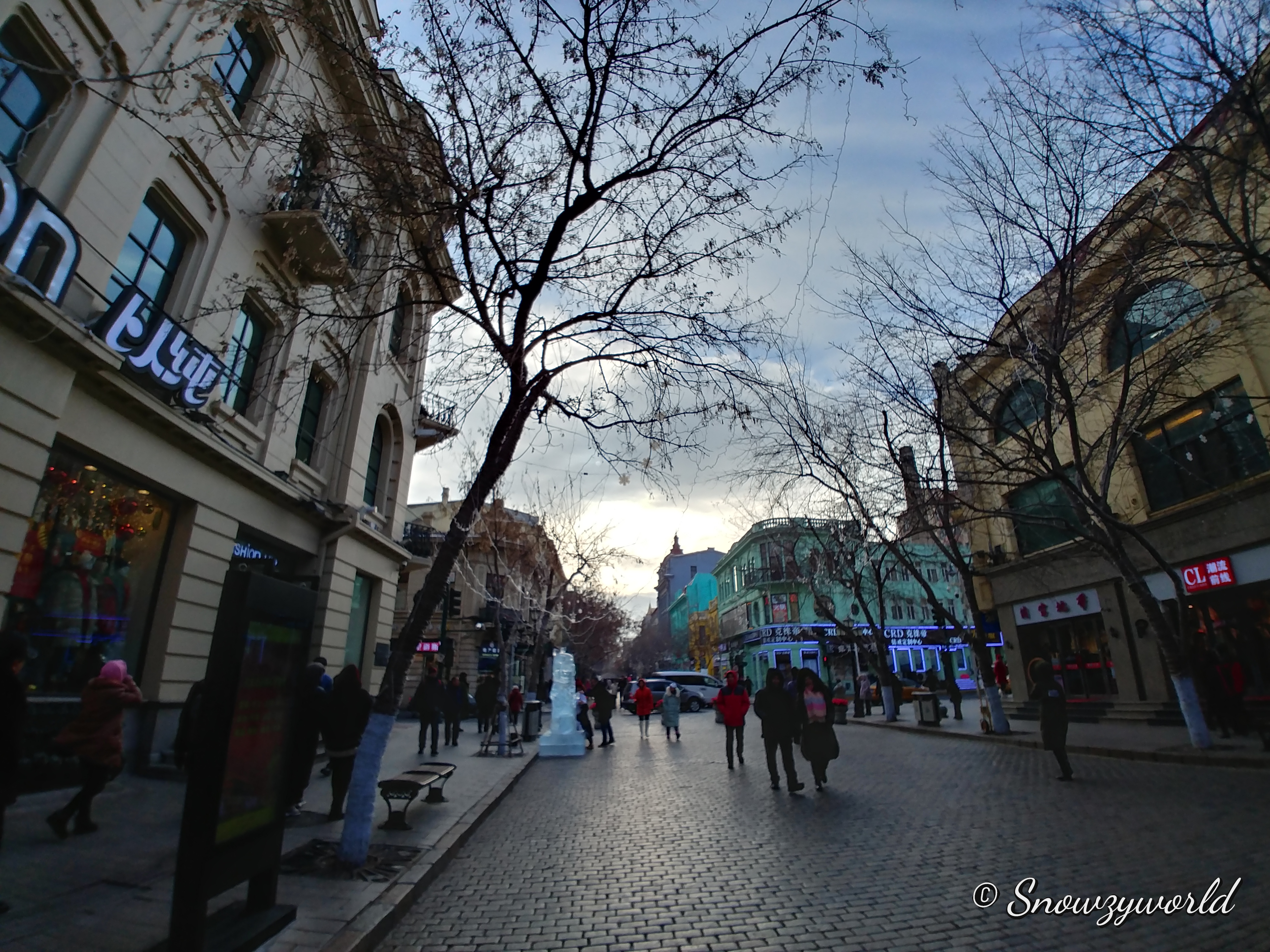 We found ourselves walking up and down this street almost every night. Not that the shops are interesting, but everyone was there! There were also ice sculptures dotting the whole street.
